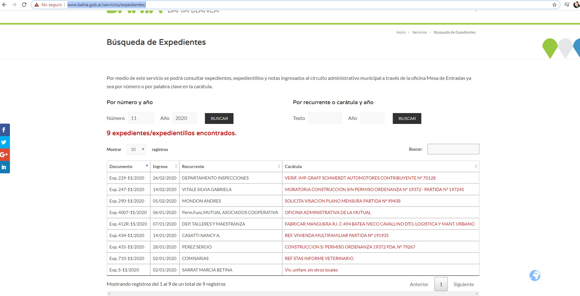 estimado: Ingrese al siguiente link http://www.bahia.gob.ar/servicios/expedientes/ , en el sector izquierdo de la pantalla aparecera la opcion por nùmero y por año . Alli debera colocar en la opción número el 11 y en el año 2020 . Se desplegará una lista de expedientes donde podrá encontrar el suyo 247-11/2020 y consultar el estado. Adjunto una imagen para que pueda observarlo . saludos cordiales