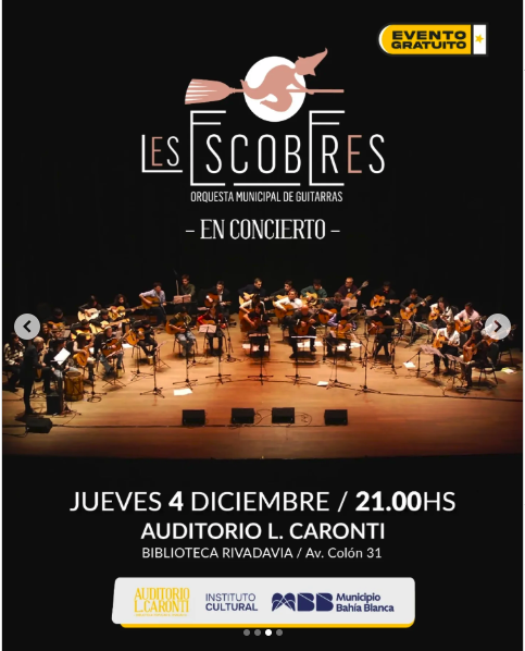 La Orquesta Municipal de Guitarras Lxs Escoberxs anuncia su concierto de fin de año ofreciendo un repertorio de obras de autores argentinos y universales abordando géneros como el folclore, la música académica, el tango, el rock.