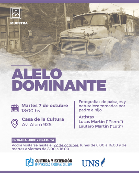 El nombre de la muestra surge de sumar a la parte artística, la función como docente de “Introducción a la biología” de Lucas. Un alelo es cada una de las copias que tiene todo gen (secuencia de ADN que determina alguna característica). Para cada gen tenemos dos copias, una heredada de la madre y una del padre, y hay alelos dominantes y recesivos. En este caso, hacemos la analogía de “alelo dominante” con la pasión por la fotografía: el hijo “recibió” el alelo dominante de amor a la fotografía, entonces lo expresa.