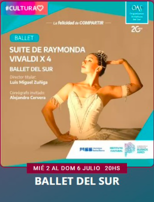 Organismos Artísticos del Sur presentará a su cuerpo de danza con cinco funciones. Se pondrá en escena la Suite de “Raymonda” y “Vivaldi x 4”.