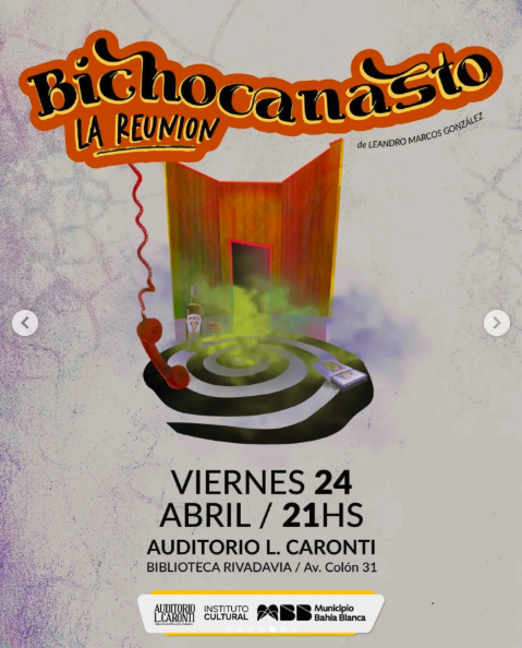 Viernes 24 de abril – 21 hs. BICHOCANASTO, LA REUNIÓN Cuatro amigas (de toda la vida) se reúnen una vez por semana, con la excusa de jugar a las cartas y charlar sobre el devenir de sus vidas (y de algunas ajenas, también)