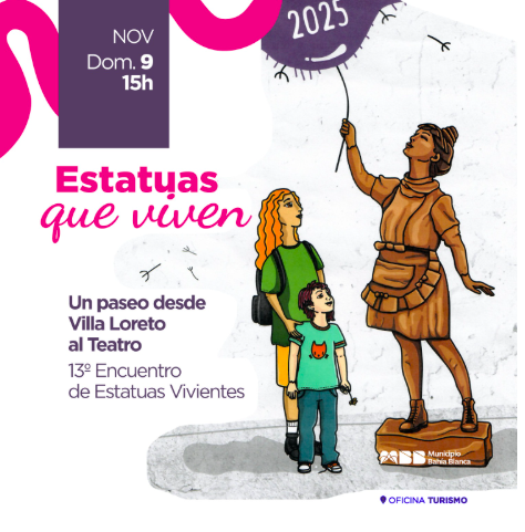 Recorreremos juntos desde la Oficina de Turismo hasta Villa Loreto y luego hacia el Teatro Municipal, acompañando a los artistas que llenan de vida las calles de Bahía.