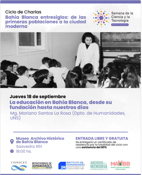 CHARLA: LA EDUCACION EN BAHIA BLANCA, DESDE SU FUNDACION A NUESTROS DIAS