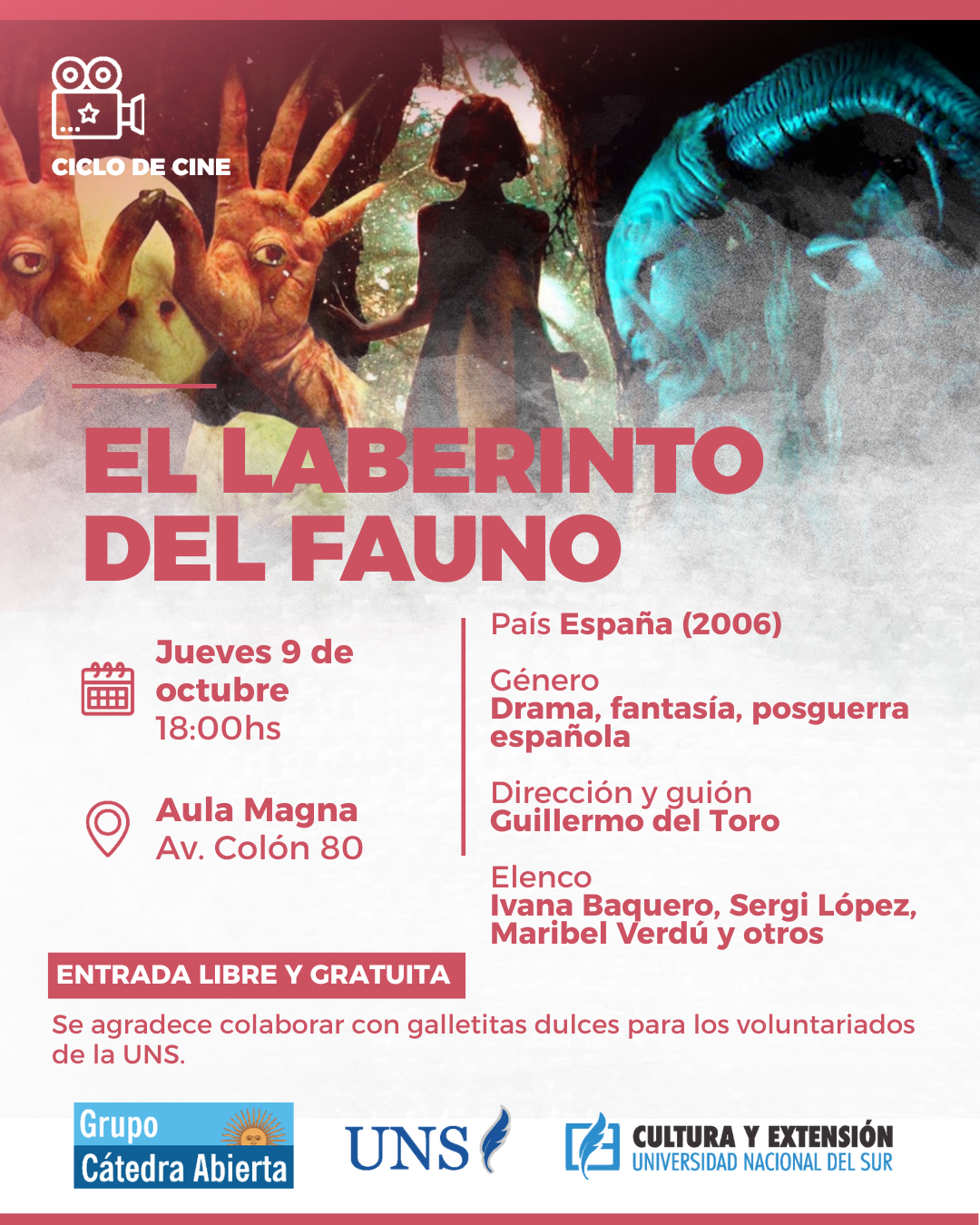 el jueves 9 de octubre, a las 18 hs., estaremos proyectando la película “El laberinto del Fauno” (ver ficha técnica y el afiche correspondiente)