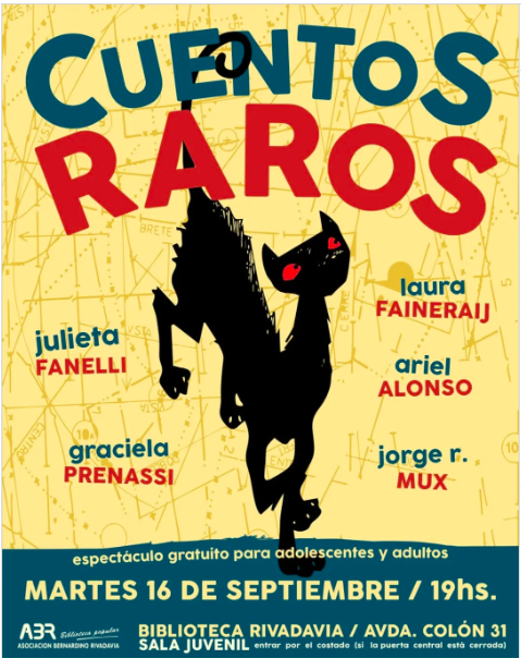 “Cuentos raros” Narraciones para adolescentes y adultos a cargo de Ariel Alonso, Laura Faineraij, Julieta Fanelli, Jorge Mux y Graciela Prenassi.