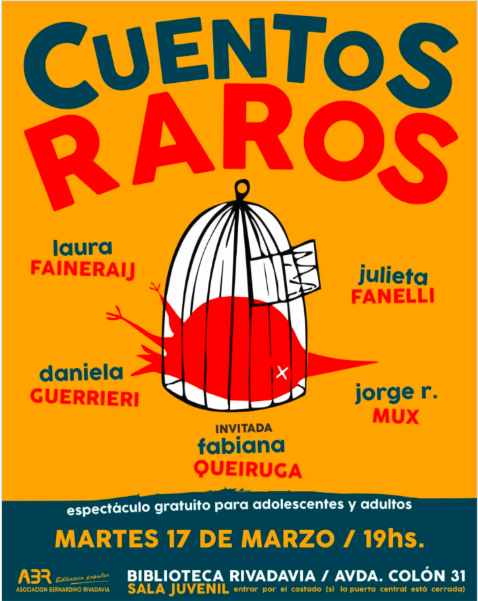 “Cuentos Raros” Espectáculo gratuito para adolescentes y adultos. Martes 17 de marzo – 19 hs – Sala Juvenil Biblioteca Bernardino Rivadavia, Avenida Colón 31.