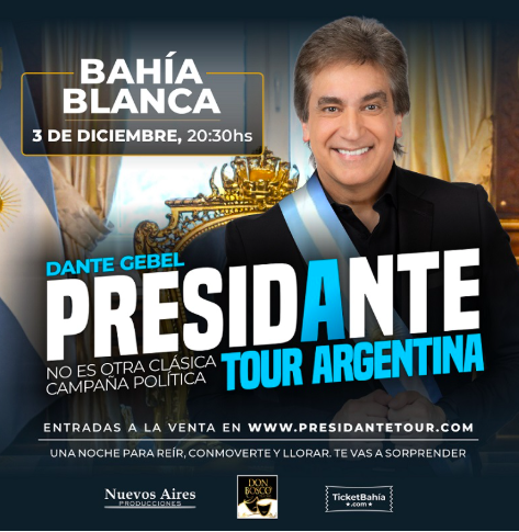 El carismático conductor, actor, productor e influencer Dante Gebel, reconocido mundialmente por sus conferencias y motivaciones dirigidas a la juventud y la familia, llega nuevamente a Argentina con su espectáculo PRESIDANTE 2025, Tour ARGENTINA.