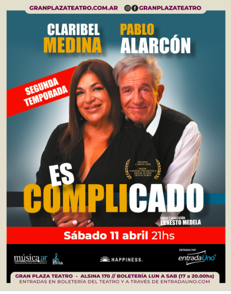 #Teatro #BahíaBlanca #GranPlaza #EsComplicado #ClaribelMedina #PabloAlarcón #Comedia #AgendaCultural #TeatroArgentino 🎭🔥
