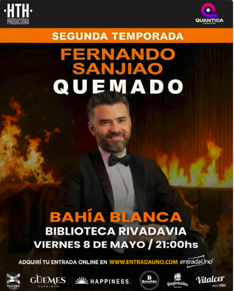 Fernando Sanjiao vuelve con la 2° temporada de “Quemado”, su unipersonal más picante y actual. Humor afilado, situaciones cotidianas y una mirada tan honesta como divertida sobre eso que a todos nos pasa: estar un poco quemados.