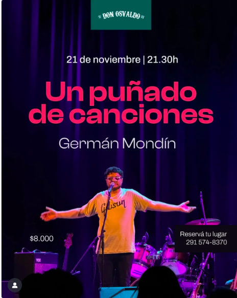 #GermanMondin #UnPuñadoDeCanciones #RockNacional #MusicaDeAutor #DonOsvaldo #CafeCultural #ViernesMusical #BahiaBlanca