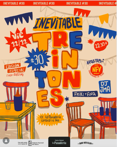 Todo ésto va a suceder el 12/12 en Lamadrid 544 @cc.lapanaderia @donosvaldocafecultural 🥵 22.30HS abrimos puertas y 23.00HS arranca el chow.