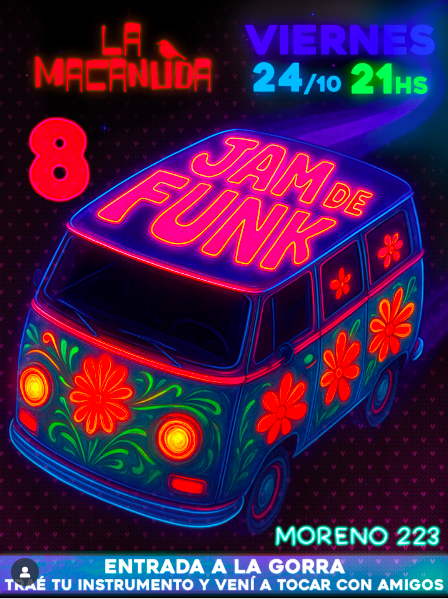 Comenzará la noche con un show de improvisacion de por algunos músicos de la escena local, para luego abrir el escenario a quien se acerque con su instrumento a compartir. Podés también venir con tus amigxs a tocar algunas (1 o 2) canciones del estilo.