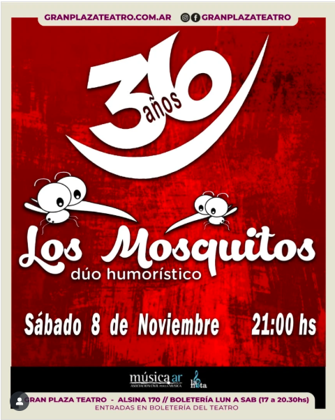 Los amigos del @duolosmosquitos cumplen “36 años” y lo festejan a lo grande este sábado en el @granplazateatro. Desde Saldungaray al mundo 👏 ellos son una gran parte de nuestra cultura y no te podes quedar afuera!!! 🔊🥁