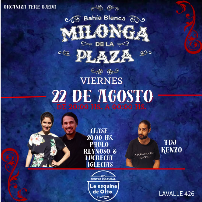 Viernes 22 de Agosto Milonga de la Plaza en la esquina de Otto