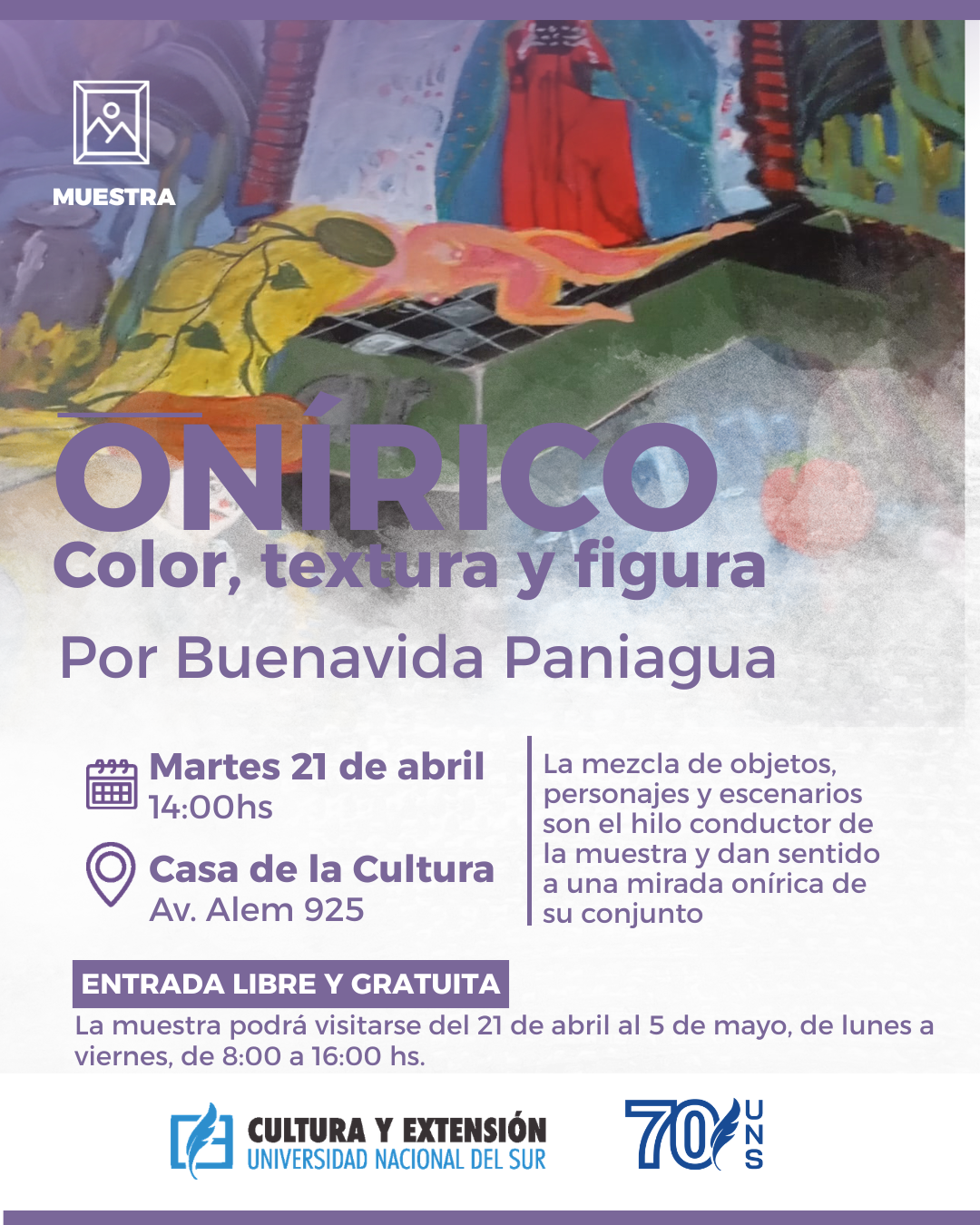 Inauguración martes 21 de abril 14:00 horas, Casa de la Cultura UNS, Av. Alem 925