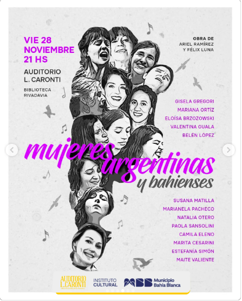 La obra musical Mujeres Argentinas, de Ariel Ramírez y Félix Luna, interpretada por 14 artistas mujeres de Bahía Blanca.