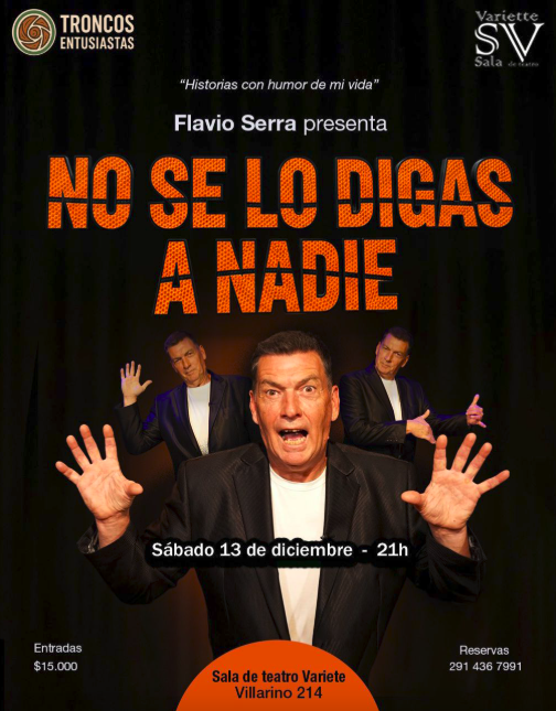 Flavio Serra tiene el humor y la experiencia de un hombre que sí vivió el Bahía de antes. Conocido por su paso como jugador de Estudiantes, Flavio, pasados los 60, sube al escenario con “No se lo digas a nadie” para traer de vuelta esas épocas, ¡pero con risa!