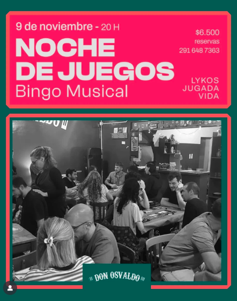 Cerramos la semana a toda máquina con una Noche de Juegos organizada por Lykos Jugada Vida. ¡Y esta vez con un Bingo Musical que te va a levantar el espíritu!