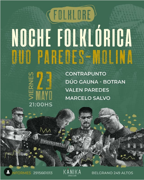 El dúo @duoparedesmolina nos invita a compartir una noche folklorica junto a Contrapunto, dúo Gauna-Botran, Valen Paredes y Marcelo Salvo!