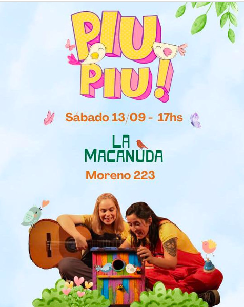 El sábado 13 de septiembre a las 17hs hay show de @piupiumusica, una propuesta musical pensada para la primer infancia 💛💗