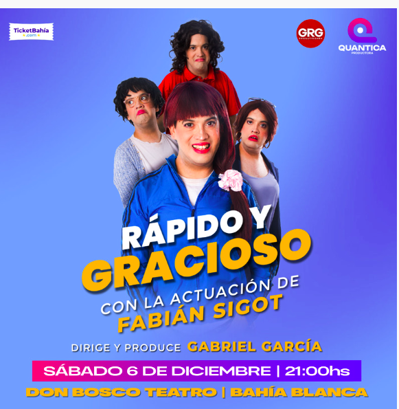 RAPIDO Y GRACIOSO es un show unipersonal lleno de humor con un desfile de increíbles y disparatados personajes como son La Caro, Inés, Lorena y Viviana, interpretados por Fabián Sigot y dirigidos y producidos por Gabriel García.