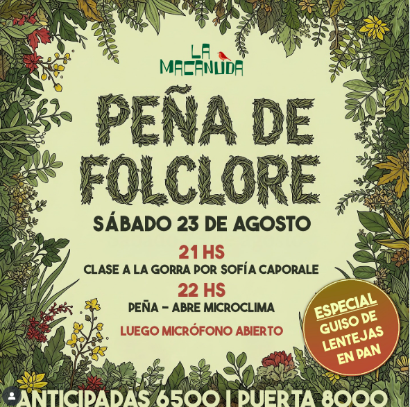 El sábado 23 de agosto hay peña de folclore en La Macanuda