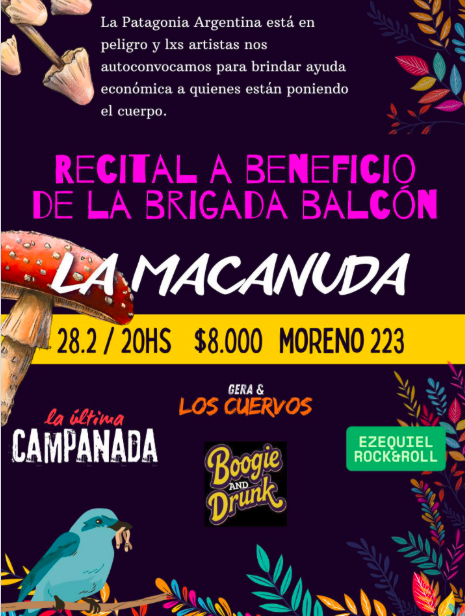 Sábado 28 de febrero a las 21 hs en La Macanuda se presentan @laultima.campanada@gerayloscuervos.rock@ezequielrockandroll y @boogieanddrunk en un recital a beneficio de la Brigada Balcón.