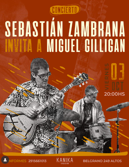 Regresa el talentoso guitarrista bahiense -radicado en Bs As- @sebastianfzambrana!! Y se presenta junto al baterista @miguegilli en un concierto íntimo donde ofrecerán canciones relacionadas al jazz, y el cruce de estilos será protagonista.