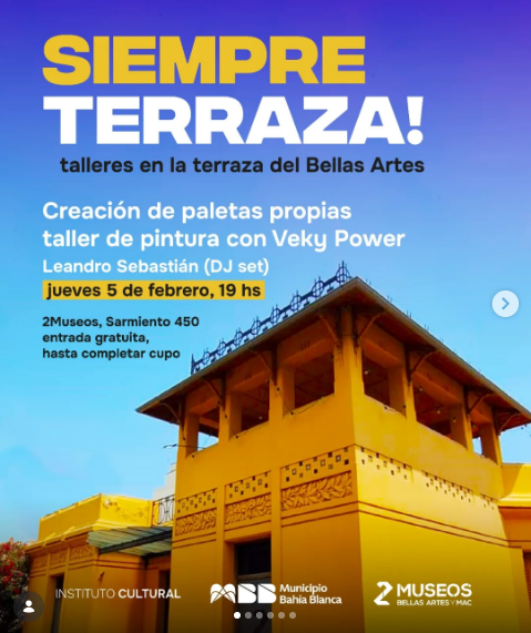 📢 Este jueves 5 de febrero, a las 19 hs, vuelve Siempre Terraza! a 2Museos. Taller de arte, tardecita y buena música en la terraza del Bellas Artes.