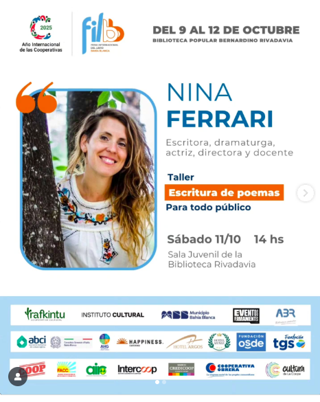 ¿Escribís poesía o tenés ganas de arrancar? Venite a aprender con Nina Ferrari a la FILBB 🫶🏽