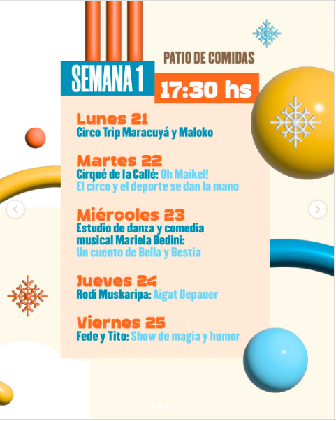 ¡Te esperamos desde el lunes 21 de lunes a viernes a las 17:30 hs en el escenario del Patio de Comidas ! 🤩