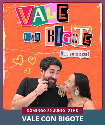 Vale con bigote, el fenómeno de las redes sociales te invita a disfrutar de su nuevo espectáculo: «Y …yo te dije!». Este show promete risas y diversión con ese estilo único que los caracteriza: la chispa, el desparpajo y ese equilibrio entre la alegría y el sarcasmo con que abordan la convivencia y la modernidad de las situaciones cotidianas de cualquier pareja común!!