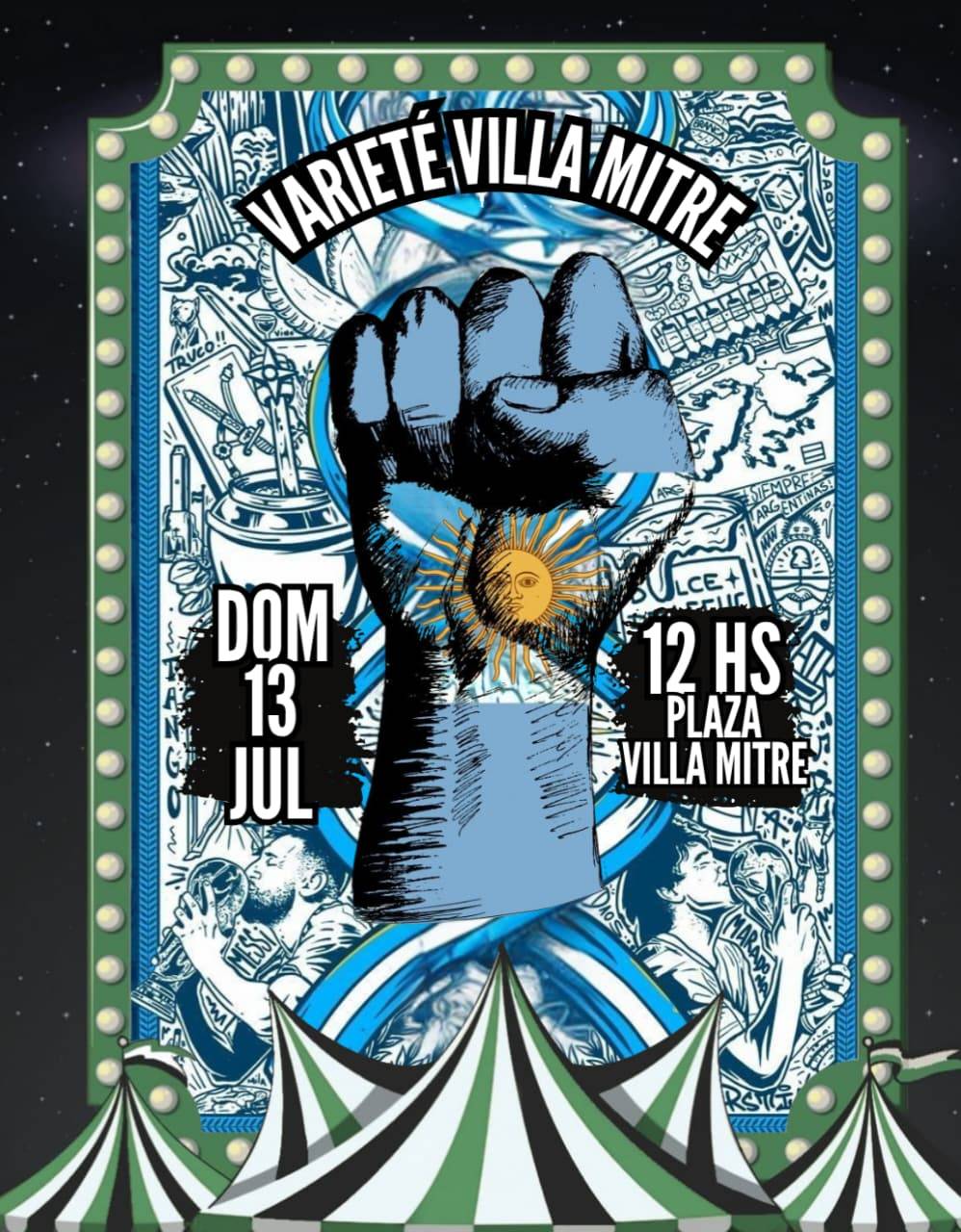 Domingo 13 de Julio en la Plaza Villa Mitre, desde las 12 hs.
