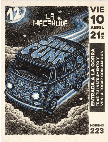 Comenzará la noche con un show de improvisacion de por algunos músicos de la escena local, para luego abrir el escenario a quien se acerque con su instrumento a compartir. Podés también venir con tus amigxs a tocar algunas (1 o 2) canciones del estilo.